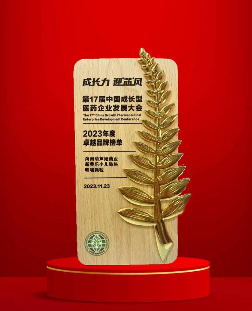 大会期间,一年一度的“金叶奖•2023年度医药行业风云人物奖”榜单重磅揭晓,人生就是博尊龙药业集团党委书记、董事长刘景萍荣耀上榜。金叶奖是为了表彰广大医药企业家或企业为行业茁壮发展做出的卓越贡献而设立的奖项,“金”象征着品质、品牌、影响力,“叶”象征着生命、健康、成长力。金与叶结合,有“敬业、兢业、竞业”之意。此外,集团黄金单品新费乐®小儿肺热咳喘颗粒凭借卓越的产品质量和品牌影响力赢得了行业、市场和消费者的肯定,获得了“2023年度卓越品牌奖”。